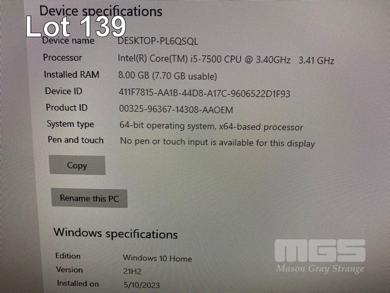 ALL-IN-ONE PC, DELL OPTIPLEX 7450, CORE i5 7500 (7TH GEN) @ 3.4GHz, 8GB DDR4 RAM, 512GB SSD, INBUILT 23.8" FHD WIDESCREEN (1920x1080), INTEL HD VIDEO, WEBCAM, 7 x USB, 1 x USB-C, WINDOWS 10 HOME INSTALLED, KEYBOARD & MOUSE S/N:D1D1LQ2
