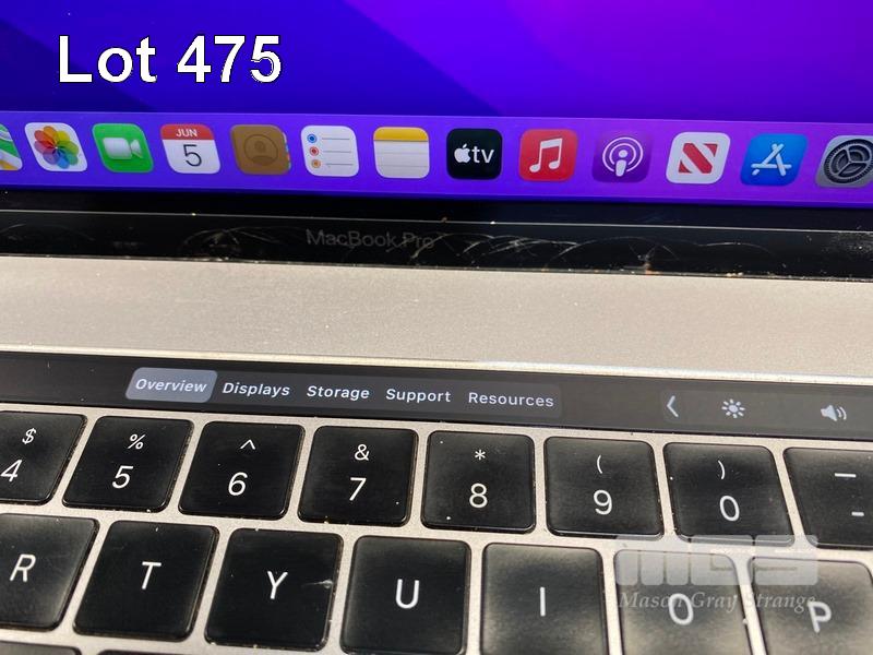 LAPTOP, APPLE MACBOOK PRO (A1990), CORE i7 8750H (8TH GEN) @ 2.2GHz, 32GB DDR4 RAM, 256GB SSD, 15.4" RETINA DISPLAY (2880x1800), INTEL UHD GRAPHICS 630, THUNDERBOLT 3, TOUCHBAR, Wi-Fi, BLUETOOTH, MAC OS 12 INSTALLED & USB-C POWER SUPPLY (NOTE: DAMAGED BOTTOM OF SCREEN, SWOLLEN BATTERY, KEYBOARD FAULT - SOME KEYS NOT WORKING / WORN, MINOR MARKS ON SCREEN) S/N:C02Y82SXJGH5