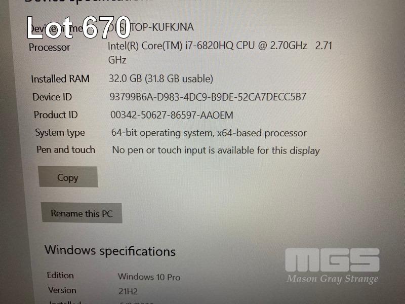 LAPTOP, LENOVO THINKPAD P50 MOBILE WORKSTATION, TYPE 20EQ, CORE i7 6820HQ (6TH GEN) @ 2.7GHz, 32GB DDR4 RAM, 512GB M.2 SSD, 500GB SSD, 15.6" WIDESCREEN (1920x1080), 4GB NVIDIA QUADRO M2000M VIDEO, Wi-Fi, BLUETOOTH, WINDOWS 10 PRO INSTALLED & POWER SUPPLY S/N:PC0FS5UL