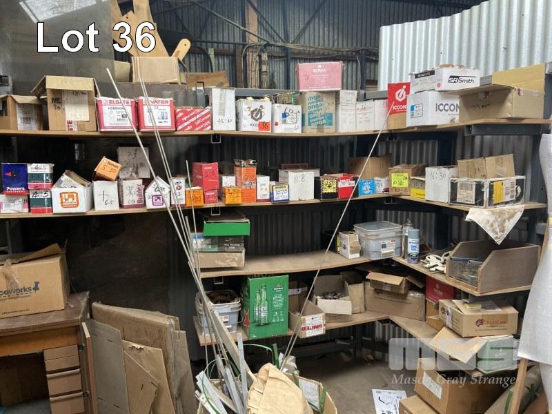 WALL OF HARDWARE INCLUDING RIVETS, TEKS, ORNATE FENCE TIPS, SPACERS, WEDGES, ETC