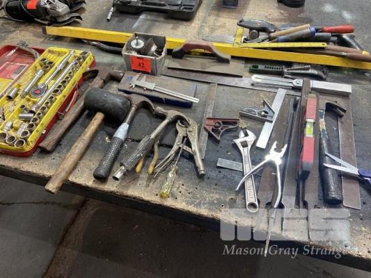 HUGE QUANTITY TOOLS, SOCKET SET, MALLETS, LEVELS, FILES, SET SQUARES, ETC