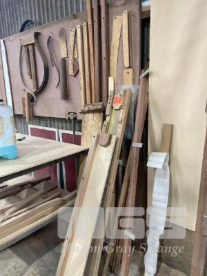 ASSORTED PATTERNS, JIGS, TEMPLATES ON WALL & UP IN WELDING AREA