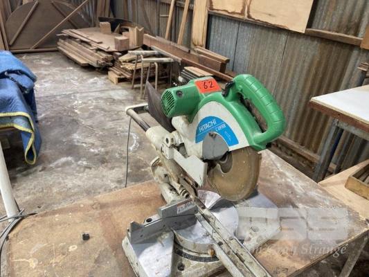 RADIAL MITRE SAW, HITACHI MOD: C10FSB 240V & MOBILE BASE
