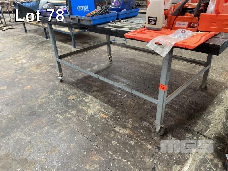 GALV TUBE BENCH WITH FORMWORK BOARD TOP, 2400 x 1200mm