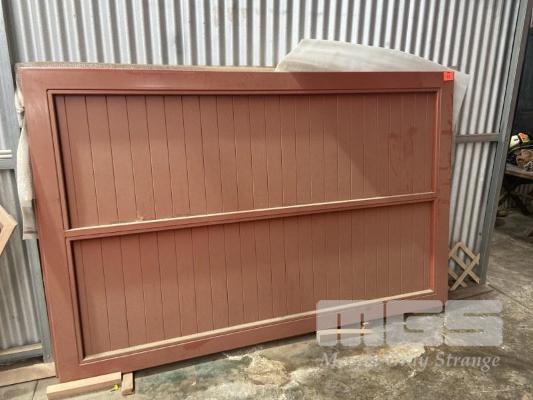 PAIR CUSTOM GATES, BOX TUBE STEEL FRAME, TONGUE & GROOVE TIMBER INSERT EACH 2400 x 1550mm, POWDER COATED FRAME