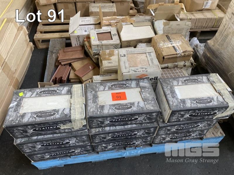 CONTENTS OF PALLET, ASSORTED WALL & FLOOR TILES, INCLUDING APPROX 6m PLATINUM CERAMICS WHITE WALL TILES & EXTRAS