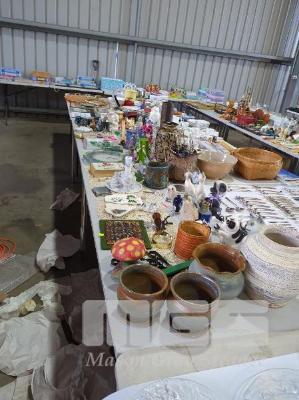LARGE QUANTITY OF A SORTED HOMEWEARS, ORNAMENTS AND OTHER KNICK-KNACKS, PICTURE FRAMES, CLOCKS, WALL HANGINGS, PLACEMATS ETC. (3 X TABLES)