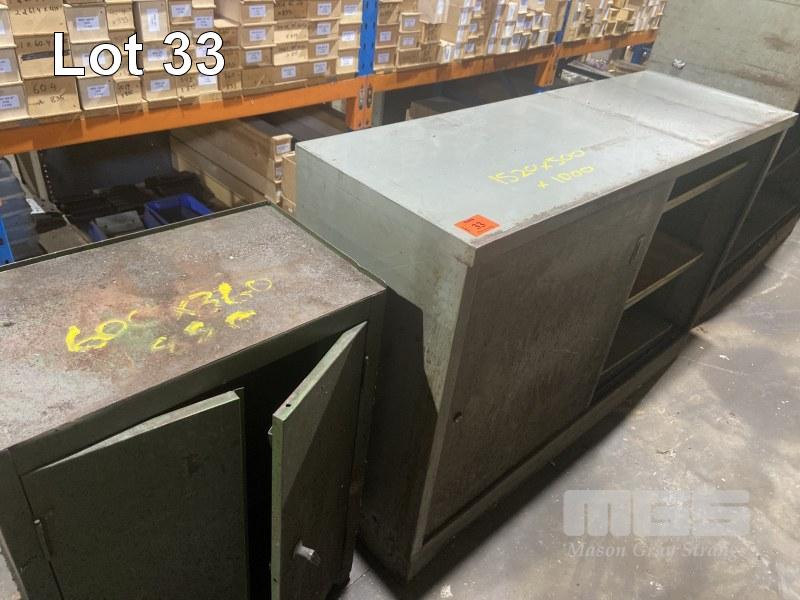 2 x STEEL STOCK CUPBOARDS, 2 DOOR, 1520 x 500 x 1000mm (H) & 600 x 360 x 850mm (H)