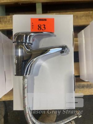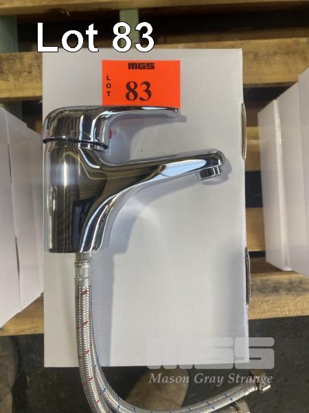 4 x SHORT SINK HOT/COLD MIXERS, CHROME, WITH FITTINGS, NEW IN BOX