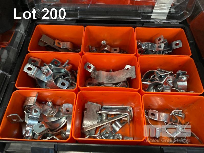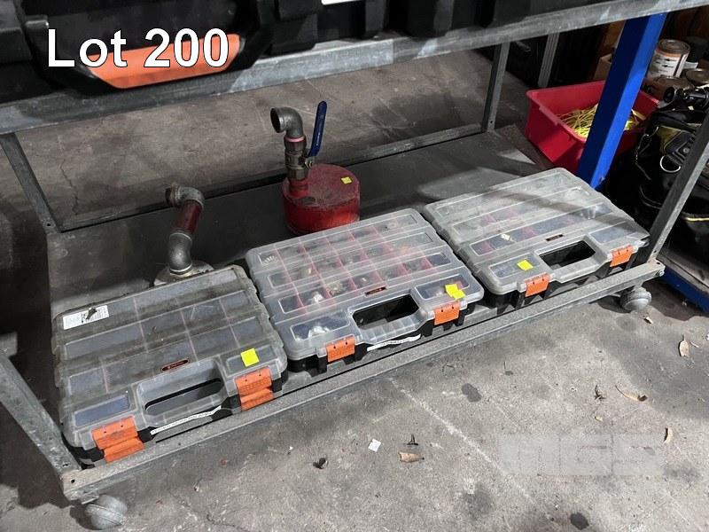 9 x GRAB KITS WITH QUANTITY ASSORTED GALV PIPE FITTINGS, MOUNTS, JOINERS, FIRE SPRINKLER HEADS, DYNA BOLTS, ETC 2 x SHELVES