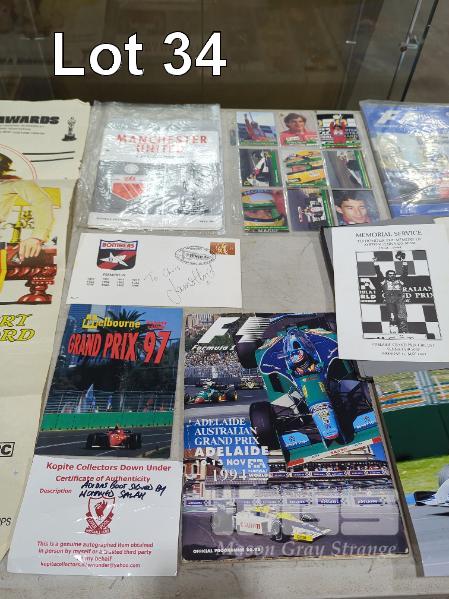 COLLECTABLE CELEBRITY PHOTOGRAPHS & OTHER MEMORABILIA. INCLUDES SCENE FROM TITANIC, MIKE TYSON, BASKETBALL TRADING CARDS, F1 PROGRAMMES, AYRTON SENNA FANDOM ETC.