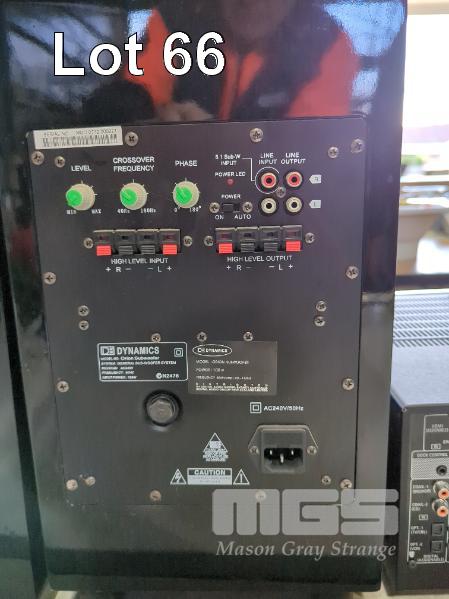 DENNON AVR-1709 SURROUND SOUND RECEIVER WITH REMOTE AND DB DYNAMIC 5.1 SPEAKER SYSTEM WITH ACTIVE SUBWOOFER.