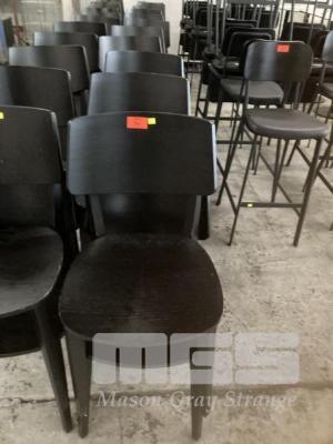 22 x CAFE CHAIRS, BLACK TIMBER FRAME, CURVED BACK