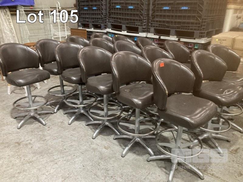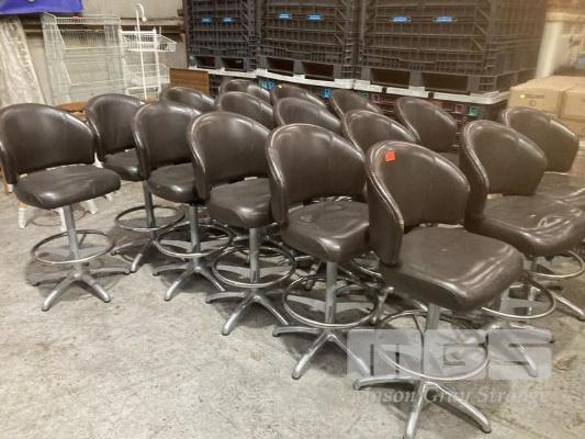14 x SWIVEL BAR/POKIE STOOLS, BROWN VINYL (SOME WORN)