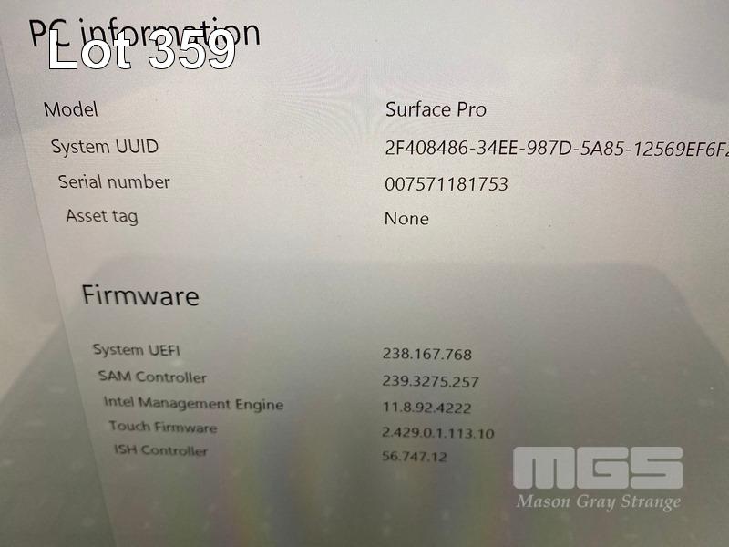 TABLET PC, MICROSOFT SURFACE PRO 5TH GEN, MODEL 1807, CORE i5 7300U (7TH GEN) @ 2.6GHz, 8GB RAM, 256GB SSD, 12.3" TOUCHSCREEN (2736x1824), INTEL HD GRAPHICS 620, Wi-Fi, CELLULAR, BLUETOOTH, WINDOWS 10 PRO INSTALLED, KEYBOARD TYPE COVER, TARGUS RUGGED CASE & POWER SUPPLY (NOTE: SMALL WHITE SPOT SCREEN BLEMISH) S/N:007571181753