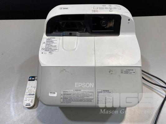 PROJECTOR, EPSON EB-485Wi ULTRA SHORT-THROW 3LCD, 3,100 LUMENS, HDMI INPUT WITH REMOTE, 645 NORMAL HOURS & 294 ECO HOURS SHOWING (NOTE: POOR DISPLAY) S/N:QTZF350465L