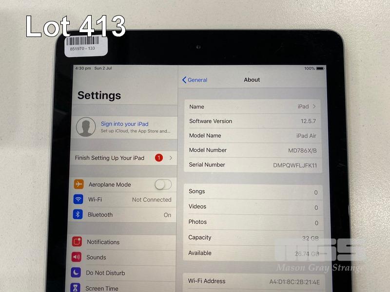 APPLE iPAD AIR, 32GB, Wi-Fi, SPACE GREY, MODEL A1474, MD786X/B (NO CABLE, NO CHARGER) S/N:DMPQWFLJFK11