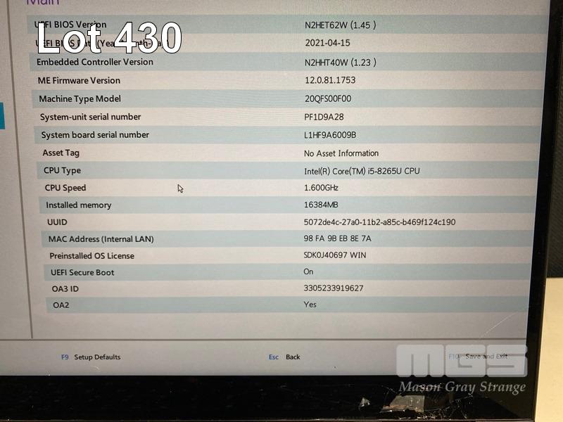 LAPTOP, LENOVO THINKPAD X1 YOGA, TYPE 20QF, CORE i5 8265U (8TH GEN) @ 1.6GHz, 16GB DDR4 RAM, 256GB NVMe M.2 SSD, 14" TOUCHSCREEN (1920x1080), INTEL UHD GRAPHICS, Wi-Fi, BLUETOOTH, STYLUS, WINDOWS 11 PRO INSTALLED & USB-C POWER SUPPLY (NOTE: DAMAGED SCREEN, TOUCHSCREEN NON-RESPONSIVE, MINOR MARKS ON SCREEN) S/N:PF1D9A28