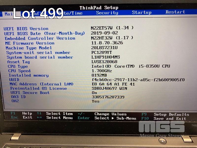LAPTOP, LENOVO THINKPAD T480s, TYPE 20L8, CORE i5 8350U (8TH GEN) @ 1.7GHz, 8GB DDR4 RAM, 256GB NVMe M.2 SSD, 14" TOUCHSCREEN (1920x1080), INTEL HD VIDEO, Wi-Fi, BLUETOOTH, WINDOWS 11 PRO INSTALLED (NO USB-C POWER SUPPLY) (NOTE: NO BATTERY, SMALL WHITE SPOT SCREEN BLEMISH) S/N:PC1209YT