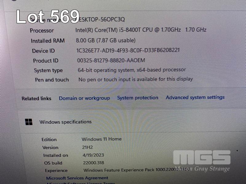 TINY-IN-ONE PC, LENOVO THINKCENTRE M720q, CORE i5 8400T (8TH GEN) @ 1.7GHz, 8GB DDR4 RAM, 256GB SSD, TIO24Gen3 23.8" LED-BL LCD WIDESCREEN, WEBCAM, Wi-Fi, WINDOWS 11 HOME INSTALLED & POWER SUPPLY (NO KEYBOARD, NO MOUSE) (NOTE: SCRATCHES ON SCREEN) S/N:PC111TB9