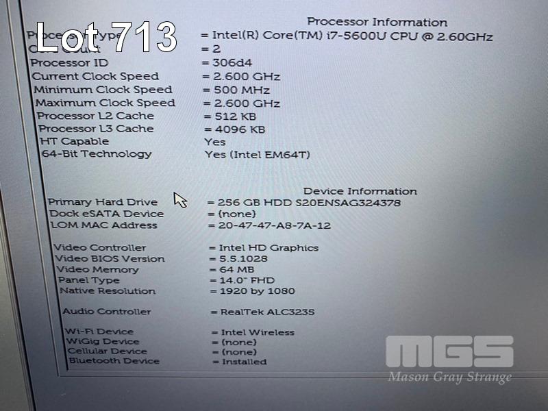 LAPTOP, DELL LATITUDE E7450, CORE i7 5600U (5TH GEN) @ 2.6GHz, 8GB DDR3 RAM, 256GB SSD, 14" WIDESCREEN (1920x1080), INTEL HD VIDEO, Wi-Fi, BLUETOOTH, WINDOWS 10 HOME INSTALLED & POWER SUPPLY S/N:89SJT32
