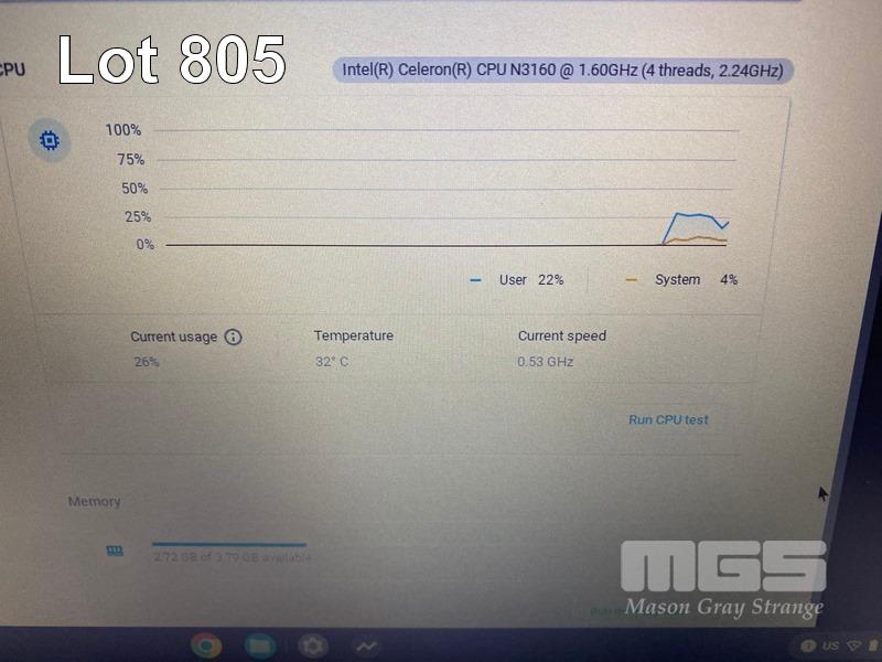 LAPTOP, ACER C731-C599 CHROMEBOOK, CELERON N3160 @ 1.6GHz, 4GB DDR3 RAM, 32GB FLASH, 11.6" WIDESCREEN, CHROME OS INSTALLED & POWER SUPPLY (NOTE: SCRATCHES ON CASING) S/N:84303540576