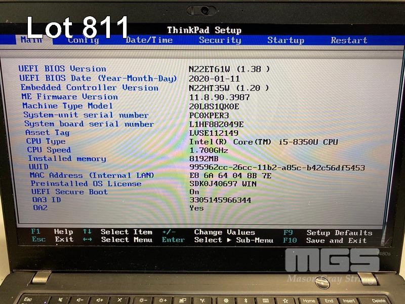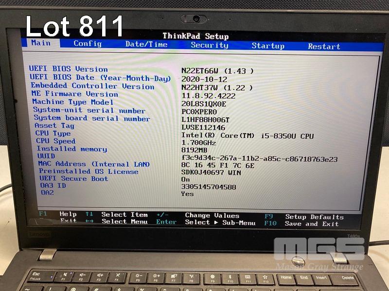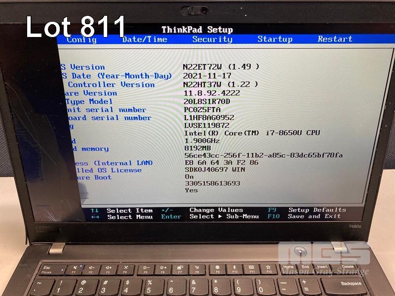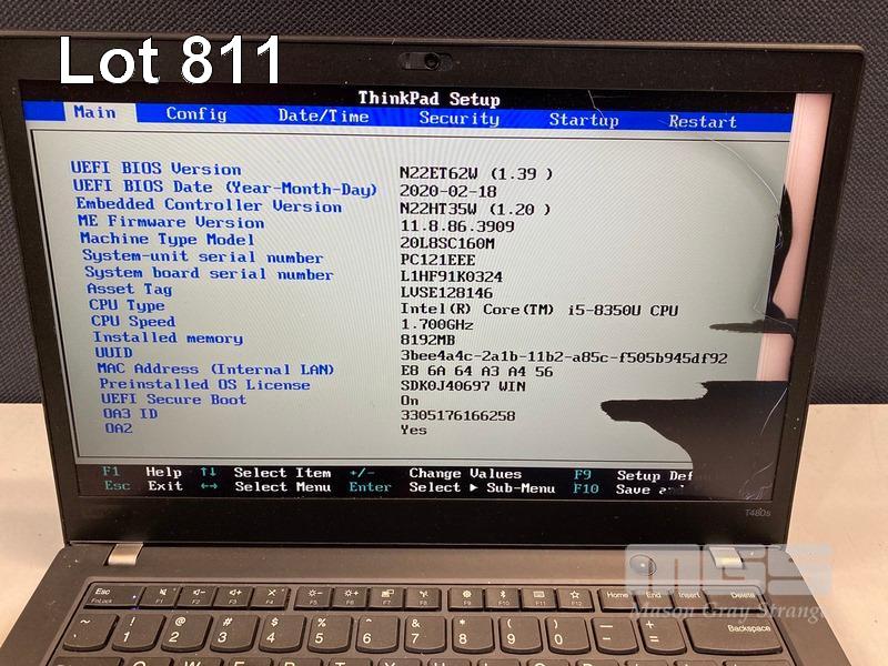 8 x LAPTOPS, LENOVO THINKPAD T480s, TYPE 20L8, INC. - 5 x CORE i5 8350U (8TH GEN) @ 1.7GHz, 8GB DDR4 RAM, 256GB NVMe M.2 SSD - 2 x CORE i7 8650U (8TH GEN) @ 1.9GHz, 8GB DDR4 RAM, 256GB NVMe M.2 SSD - 1 x DEAD, SPECS UNKNOWN, NO RAM, NO HDD (NOTE: ALL NO POWER SUPPLIES, ALL DAMAGED SCREENS, 1 x WITH DAMAGED BASE, SOME BATTERIES NOT CHARGING) S/N:PC121EEE, PC0Z5FTA, PC16NA6C, PC0XPER3, PC0Z4BAH, PC0XPER0, PC0W6ES4, PC0YMQ61