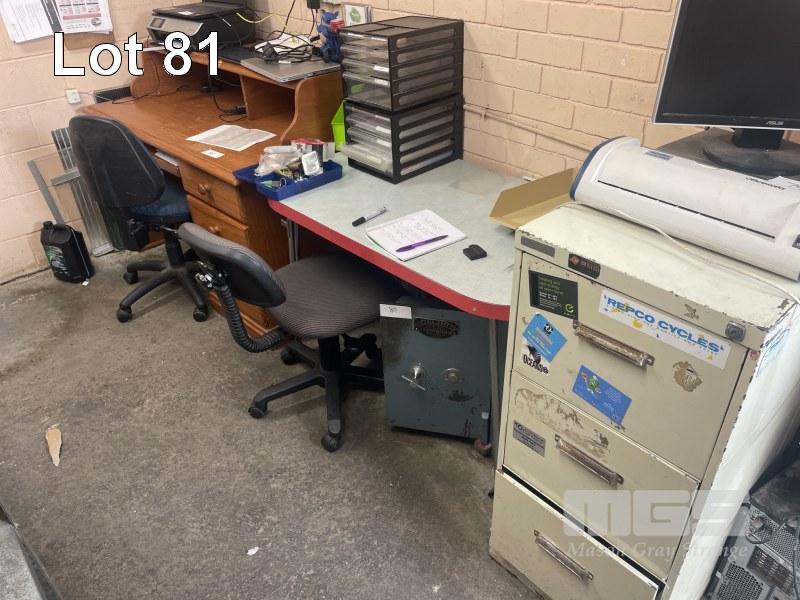 DESK, TABLE, 2 x CHAIRS & FILING CABINET