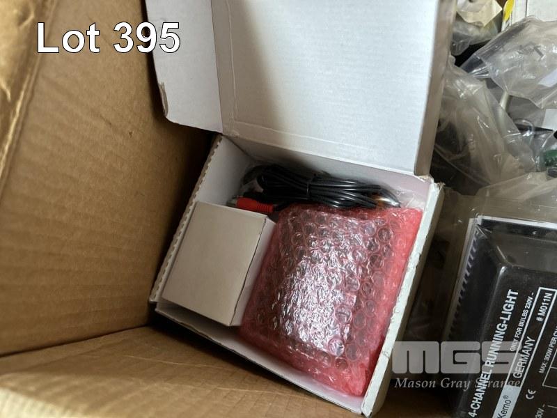 BOX ASST ACCESSORIES INC RF MODULATORS, 4-CHANNEL RUNNING LIGHT, AV SELECTOR, LED WALL DIMMER ETC