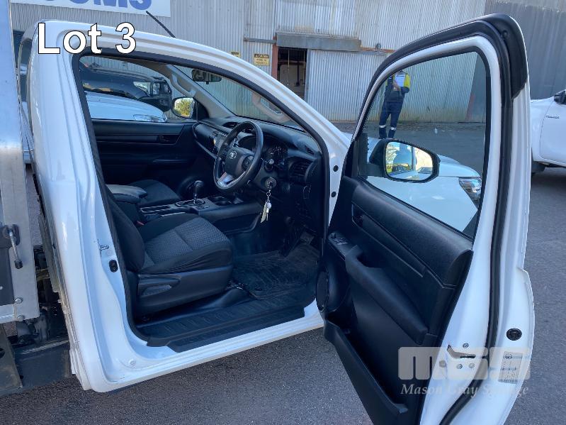2016 TOYOTA HILUX 8 GEN SINGLE CAB TRAYTOP UTILITY REG: S869 CTC (SA) VIN: MR0EX3CBX01103342 ENG: 2TRA037466 ODO: 138,543kms SHOWING 2.7 LITRE PETROL, 6 SPEED AUTOMATIC TRANSMISSION, WHITE DUCO, 2 DOORS, 2 SEAT, ABS, AIR BAG, AIR CON, ALLOY TRAY, BLUETOOTH, CD PLAYER, CENTRAL LOCKING, CRUISE CONTROL, IMMOBILISER, POWER STEERING, POWER WINDOWS, SPARE WHEEL, TOW BAR, KEY #7 (WITH PAPERS, WITH 1 KEY/S)