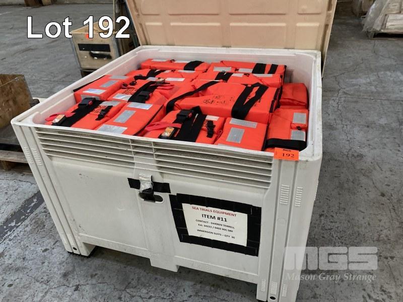 30 x LIFE JACKETS, CREW SAVER MOD: PREMIER COMPACT 0736/16 SUIT PERSON WEIGHT 43kg OR MORE WITH ILLUMINATED FLASHING BEACON LIGHT WATER OR SELF ACTIVATED HIGH VIS REFLECTIVE TAPE WITH NALLY MEGA BIN 1160 x 1160 x 780mm (H)