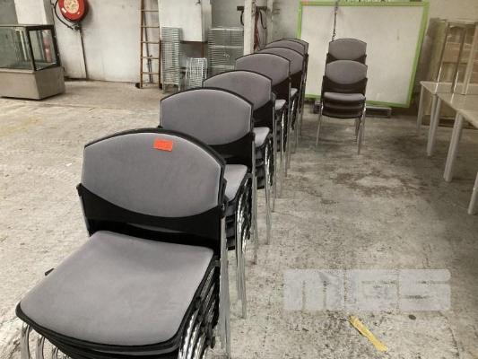 42 x STACKING CAFE/FUNCTION CHAIRS, GREY FABRIC, CHROME FRAME