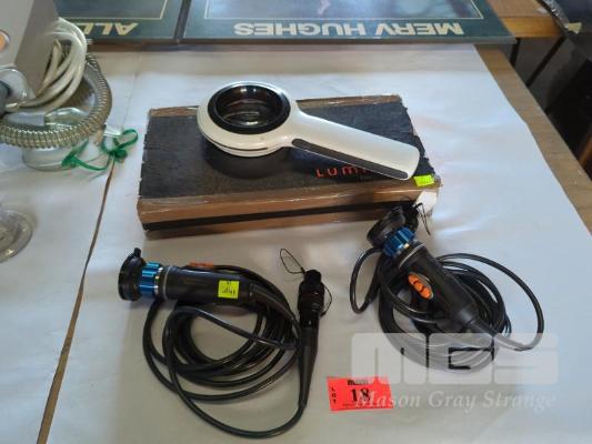 2 x SMITH & NEPHEW 3CCD CAMERA CONTROL HEADS WITH LUMIO DERMALITE ILLUMINATED LED MAGNIFIER
