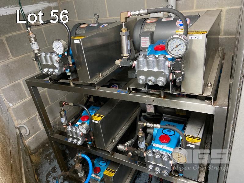 COIN OPERATED CAR WASH, JIN COLEMAN COMPANY 4 BAY, COIN OPERATED INCLUDING HIGH PRESSURE GUN WITH HOSES & OVERHEAD SWIVEL ARMS, FOAMING BRUSH, SPLATTERWAX GUN, FLOOR MAT HOLDERS, WITH POWER PACK, HIGH PRESSURE PUMP UNITS, TURTLE WAX CLEANING SOLUTION, 6 TANK CLEANING & WAXING PRODUCT HOLDERS, PLEASE NOTE: HOT WATER SERVICE NOT INCLUDED *** BUYER TO REMOVE ***