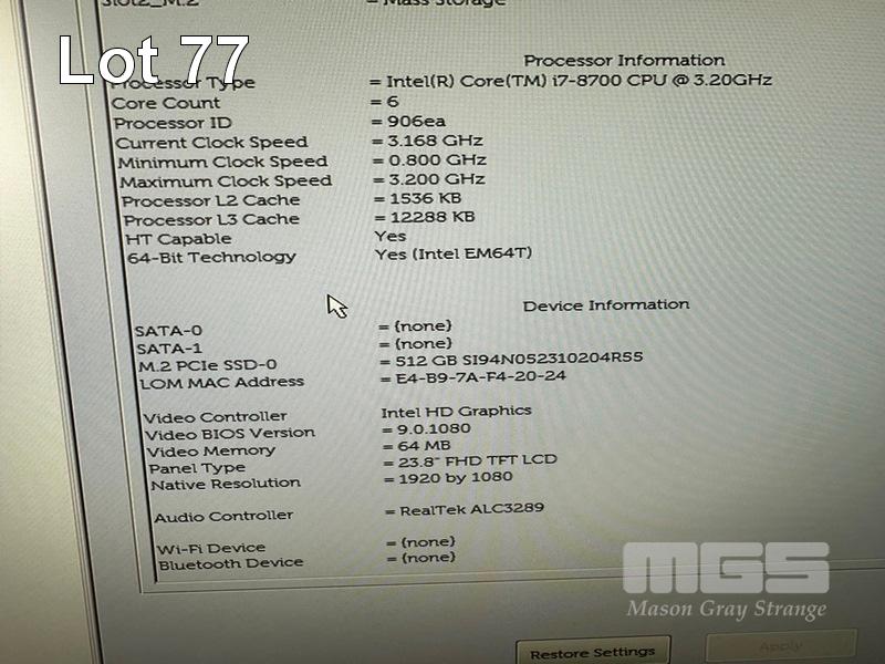 ALL-IN-ONE PC, DELL OPTIPLEX 7460, CORE i7 8700 (8TH GEN) @ 3.2GHz, 8GB DDR4 RAM, 512GB NVMe M.2 SSD, INBUILT 23.8" IPS TOUCHSCREEN (1920x1080), INTEL HD VIDEO, WEBCAM, 5 x USB, 1 x USB-C, WINDOWS 11 PRO INSTALLED, KEYBOARD & MOUSE S/N:HC519X2