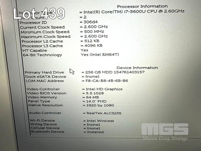 LAPTOP, DELL LATITUDE E7450, CORE i7 5600U (5TH GEN) @ 2.6GHz, 8GB DDR3 RAM, 256GB SSD, 14" WIDESCREEN (1920x1080), INTEL HD VIDEO, Wi-Fi, BLUETOOTH, WINDOWS 10 HOME INSTALLED & POWER SUPPLY S/N:8WPGH72