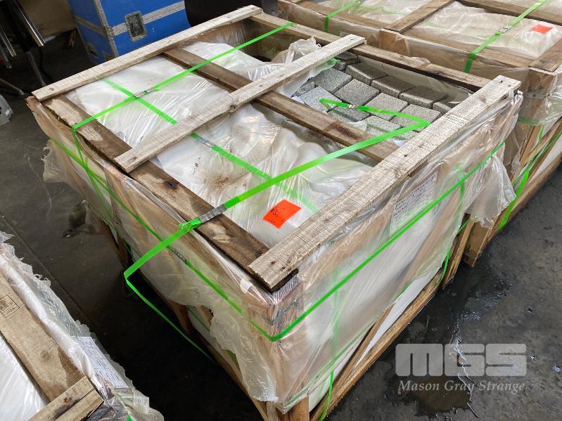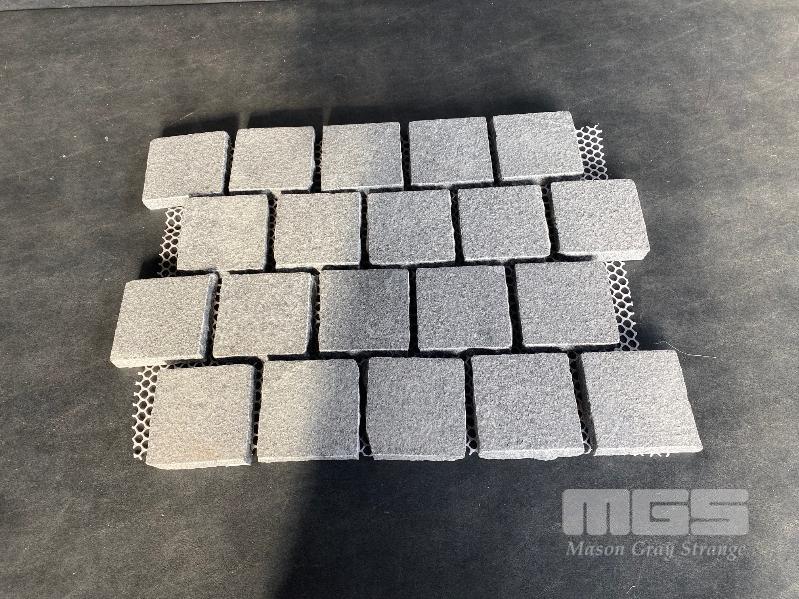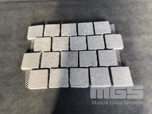 1 x CRATE COBBLESTONE PAVERS, LIGHT GREY GRANITE, STONE: 100 x 100 x 20mm, SHEET: 540 x 430 x 20mm, 99 SHEETS TOTAL