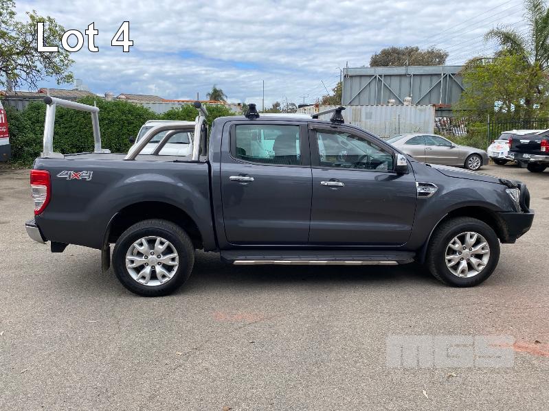 2016 FORD RANGER 2, XLT DUAL CAB UTE 4x4 REG: NO PLATES VIN: MNAUMFF50GW666165 ODO: 227,848kms SHOWING 3.2 LITRE TURBO DIESEL, 6 SPEED AUTOMATIC TRANSMISSION, GREY DUCO, 4 DOORS, 5 SEAT, 4x4 ABS, AIR BAG, AIR CON, ALLOY WHEELS, BLUETOOTH, BULL BAR, CENTRAL LOCKING, CRUISE CONTROL, IMMOBILISER, LADDER RACK, POWER STEERING, POWER WINDOWS, ROOF RACKS, SIDE STEP, SPARE WHEEL, TOW BAR, TRACTION CONTROL, REVERSE CAMERA & LCD CONCERTINA SLIDING UTE COVER, LOCKABLE WITH KEY ALLOY ROLL BAR & RACK KEY #5 (WITH 2 KEY/S, WITH OWNER'S MANUAL, WITH SERVICE BOOKS)