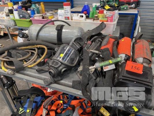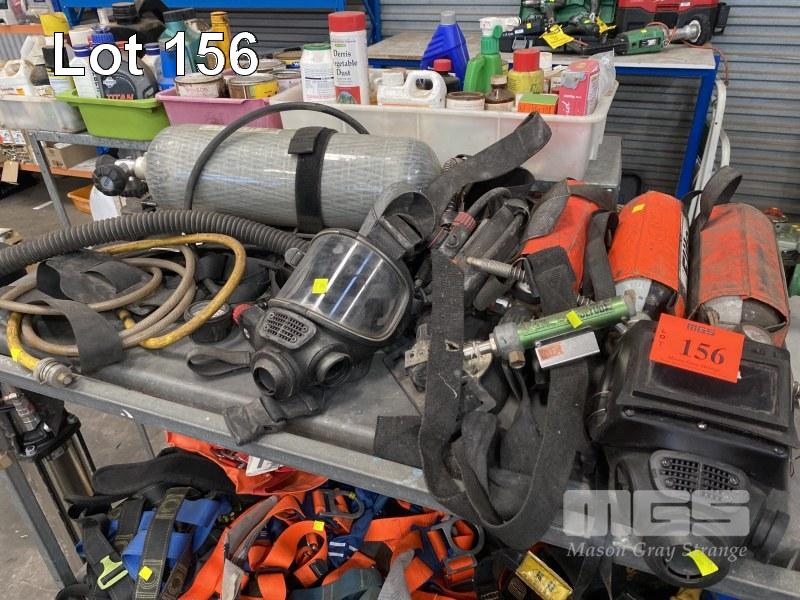4 x PERSONNEL BREATHING APPARATUS, AIR TANKS, SABRE FLITE & SCOTT LUXFER, REG, FACE MASKS, HOSES, ETC