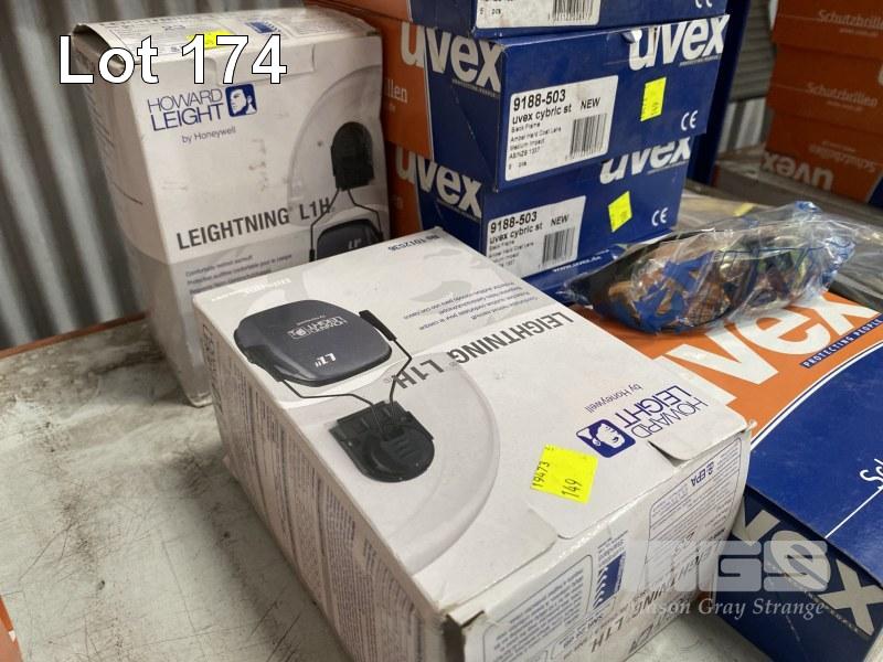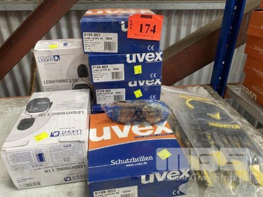 6 x BOXES (5/BOX) UVEX SAFETY GLASSES, CYBRIC ST 9188-503, AMBER & 2 x PAIRS GLOVES & HARD HAT EAR MUFFS