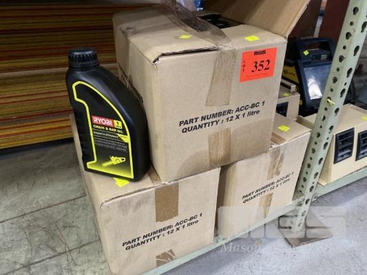 3 x BOXES OF 12 x 1 LITRE RYOBI CHAINSAW CHAIN & BAR OIL