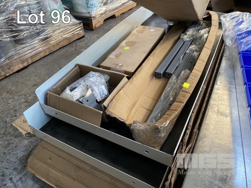 TRADIES SHELVING FIT OUT TO SUIT VAN INCLUDING 2 x STEEL SHELF TRAYS, 950 x 430mm 2 x STEEL TOPPED SHELVES, 950 x 430mm, 2 x PARTS DRAWER SHELVES, 950 x 170mm WITH PARTS DRAWERS, BRACING SUPPORTS & 2 x OIL DRIP TRAYS, 1 x PALLET