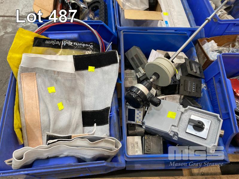 ASSORTED WELDING CLAMPS, WIRE LINERS, TIPS, SCREEN, LEATHER PROTECTORS, CAT PARTS CUP SPL-TAP, COPPER FITTINGS, WATER FLOAT LEVEL METER, ETC IN PARTS DRAWERS