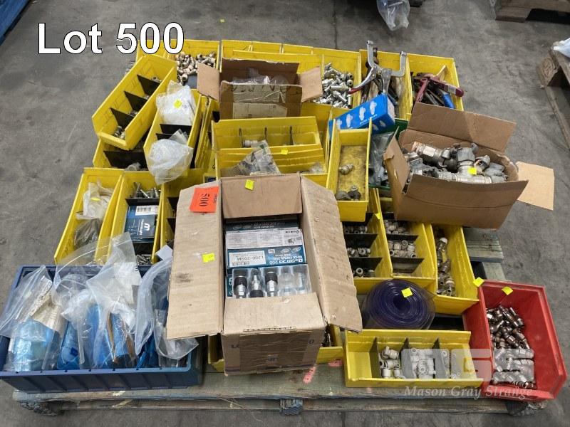 HOSE FITTINGS, THREADED & CLIP LOCK, INC STAINLESS STEEL, BRASS, PLASTIC, ETC, SUIT PNEUMATIC & HYDRAULIC IN ASSORTED PARTS DRAWERS