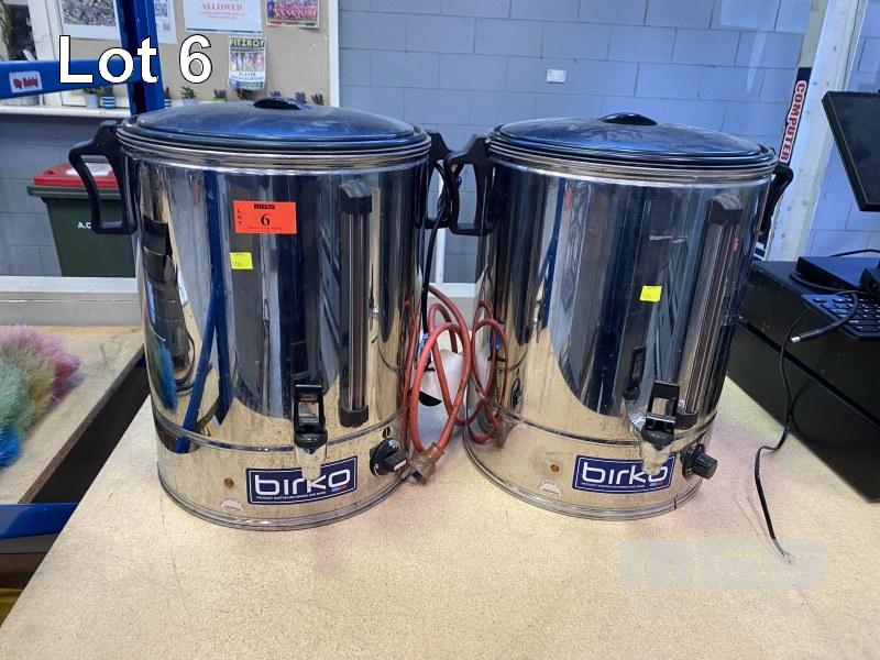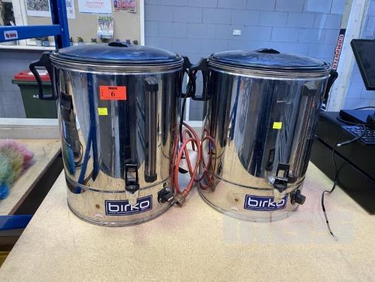 2 x BIRKO STAINLESS STEEL HOT WATER URNS, 30 LITRE