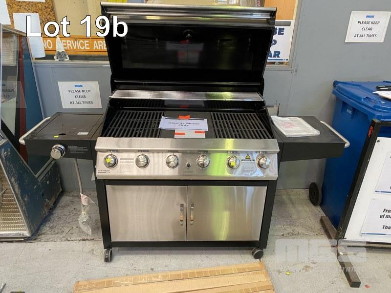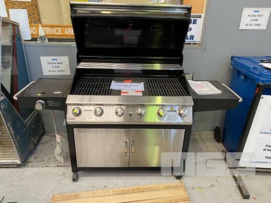 GRANDHALL PREMIUM 6 BURNER HOODED BBQ, BLACK SIDEBURNER & TROLLEY MODEL: 1002SPP NEW IN BOX (2 BOXES) ORP: $1,399