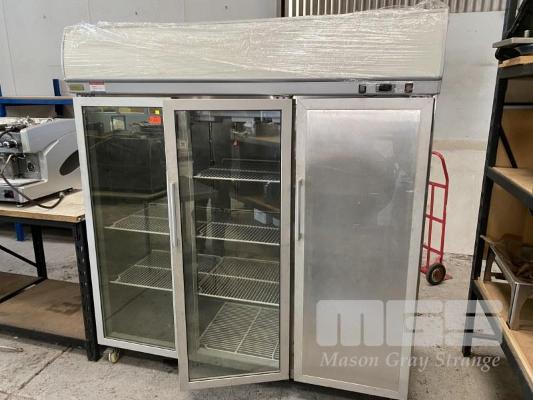 UPRIGHT 3 DOOR FRIDGE, THERMATECH 240V (NOTE: 1 x DAMAGED DOOR)