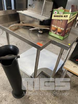 CORNER STAINLESS STEEL PREP BENCH, 90 x 90cm 2 TIER WITH SPLASHBACK