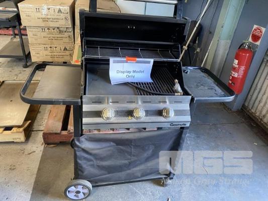 GASMATE VEGA 3 BURNER BBQ WITH HOOD ON MOBILE TROLLEY
