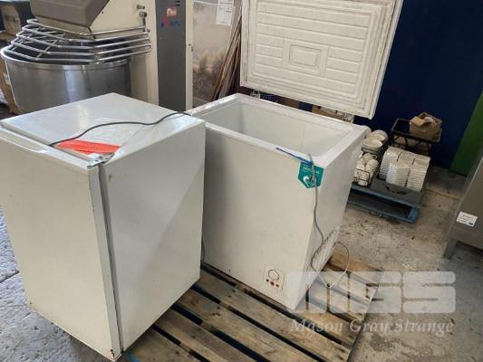 BAR FRIDGE, (NO SHELVES) & CHEST FREEZER, 145 LITRE